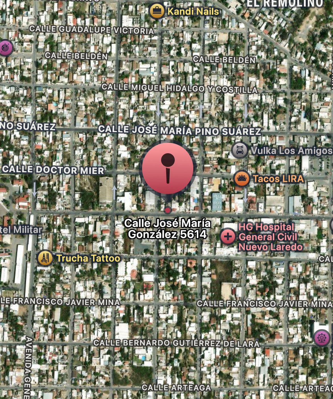 - Dirección: Gonzalez #5614 Col. Hidalgo, Nuevo Laredo, Tamaulipas